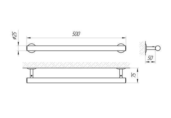 Полотенцедержатель - 1 шт, крепление (шуруп оцинкованный с дюбелем, пятак, втулка, штифт, стойка) - 2 шт, ключ шестигранный - 1 шт.