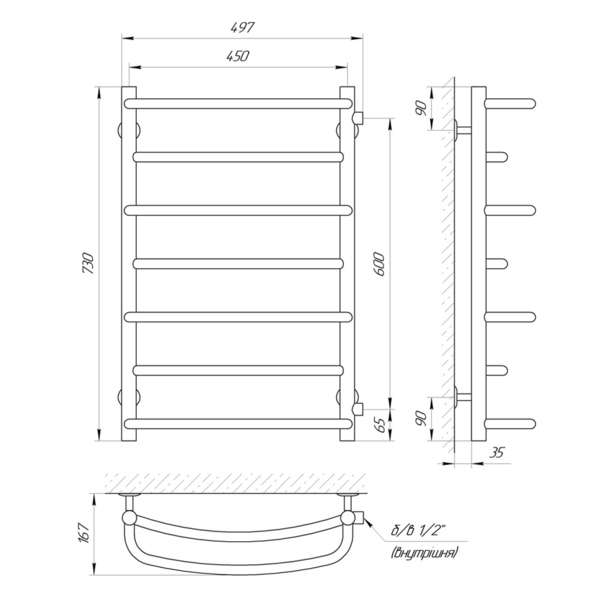 Водяной полотенцесушитель Laris Евромикс П7 450 х 700 б/п 1/2" мц 600 Laris