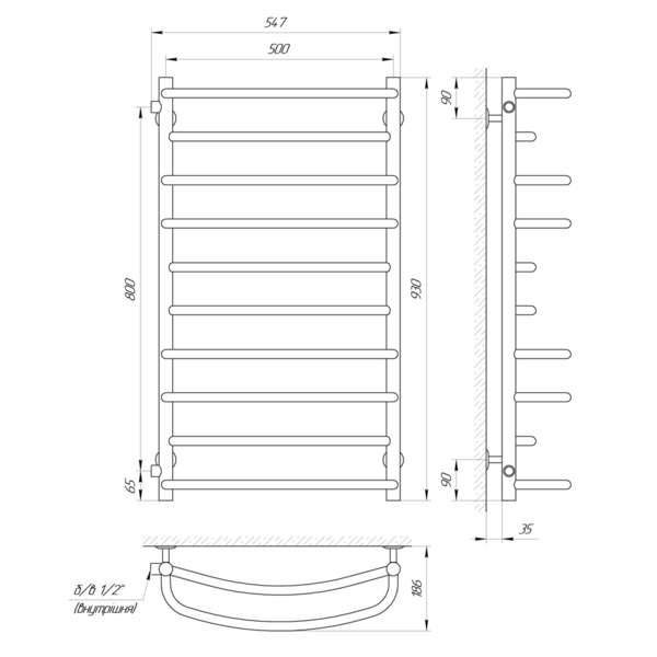 Водяной полотенцесушитель Laris Евромикс П10 500 х 900 б/п 1/2" мц 800 Laris