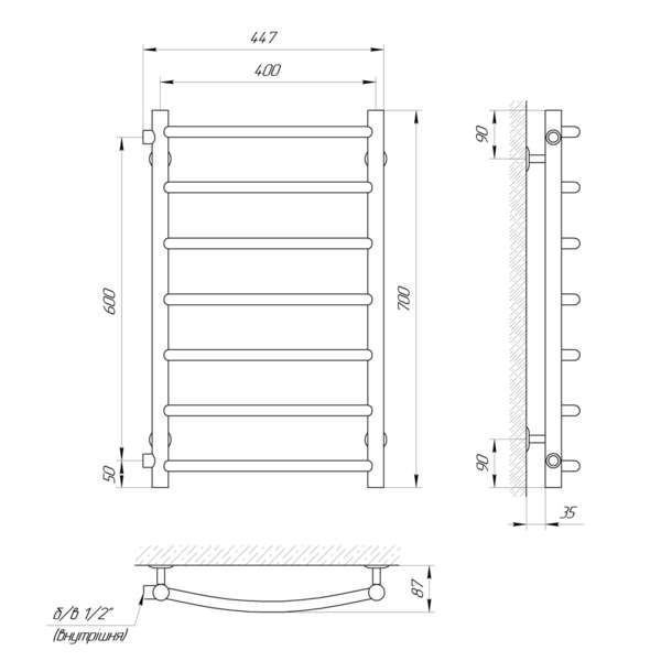 Водяной полотенцесушитель Laris Классик П7 400 х 700 б/п 1/2" мц 600 Laris