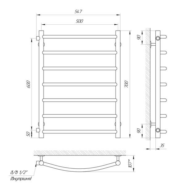Водяной полотенцесушитель Laris Классик П7 500 х 700 б/п 1/2" мц 600 Laris