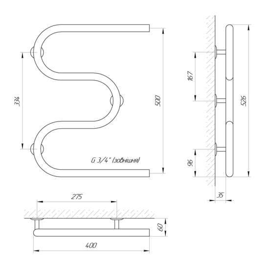 Водяной полотенцесушитель Laris Змеевик 25 РС3 400 х 500 3/4" Laris
