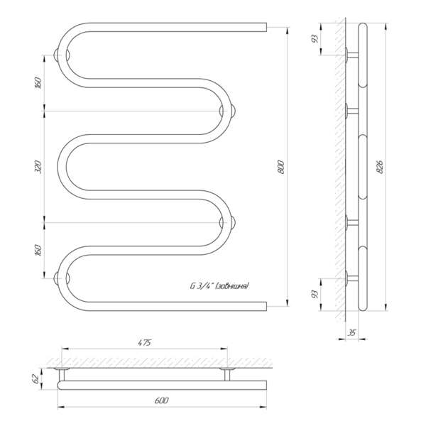 Водяной полотенцесушитель Laris Змеевик 25 РС5 600 х 800 3/4'' Laris