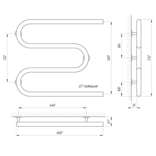 Водяной полотенцесушитель Laris Змеевик 32 РС3 600 х 500 1" Laris