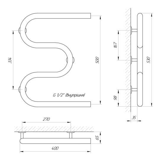 Водяной полотенцесушитель Laris Змеевик 30 РС3 400 х 500 1/2'' Laris