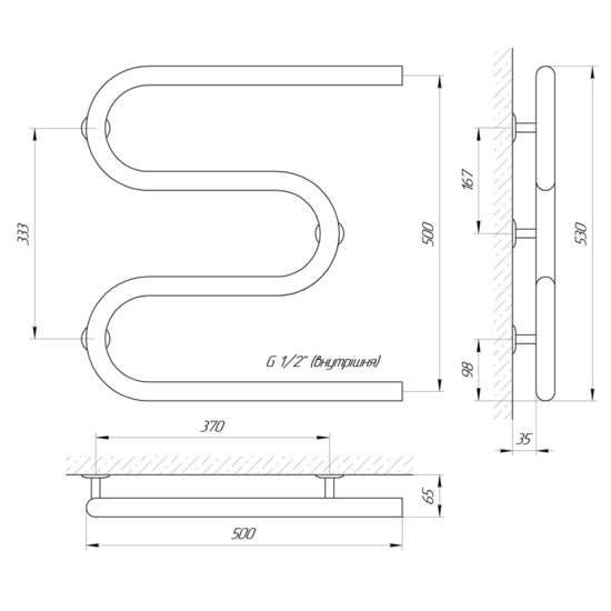 Водяной полотенцесушитель Laris Змеевик 30 РС3 500 х 500 1/2'' Laris
