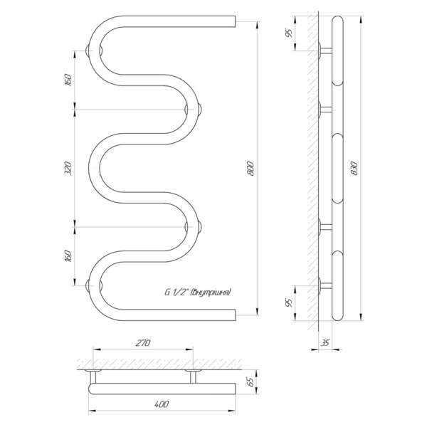 Водяной полотенцесушитель Laris Змеевик 30 РС5 400 х 800 1/2'' Laris