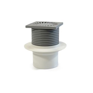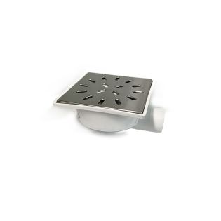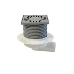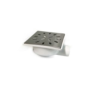 Душевой трап 15х15 см, вертикальный выход DN110, сухой затвор, с пластиковой решеткой