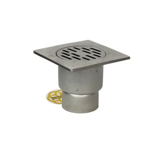 Надставной элемент для трапа 10х10 см, вертикальный выход DN100, комбинированный затвор, с решеткой из нержавеющей стали