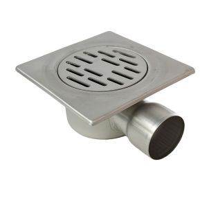 Душевой трап 10х10 см, горизонтальный выход DN50, гидрозатвор, с решеткой из нержавеющей стали