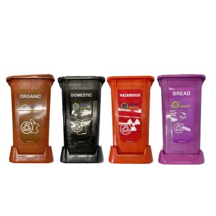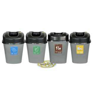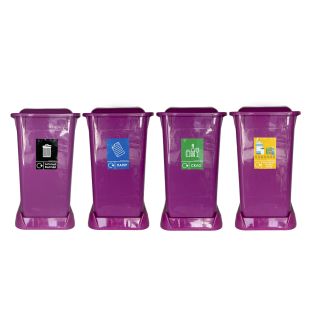 Контейнеры для сортировки мусора, 4 бака х70Л, с крышкой, пластик, цветный