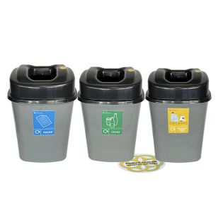 Баки для сортировки мусора 60Л, крышка с отверстием, пластик, серый+пакеты для сортировки мусора на 60Л В ПОДАРОК