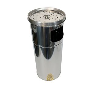 Цилиндрическая урна с решеткой – имеет боковое отверстие для сбора мусора. Сверху урна имеет «тарелку» для сбора пепла и окурков, которая закрывается крышкой с отверстиями. Такая модель позволяет отделять окурки от мусора, чем препятствует его воспламенению.