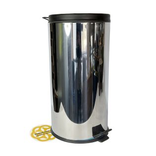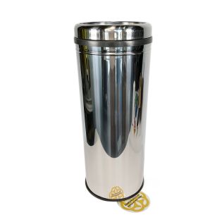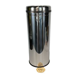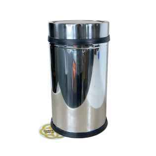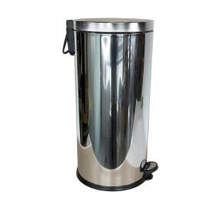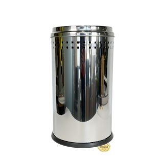 Ведро для мусора 32Л округлая крышка с отверстием, нержавеющая сталь, хром