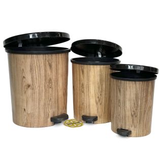 Набор ведер с педалью WOOD 22Л, 11Л и 7Л, пластик, с узором и внутренним ведром