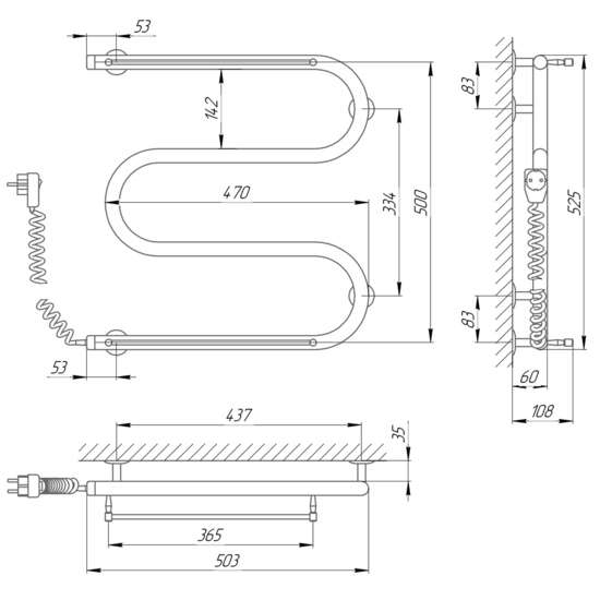 Электрический полотенцесушитель Laris Змеевик 25 РС3 500 х 500 с 2-мя полками Э (подкл. слева) Laris