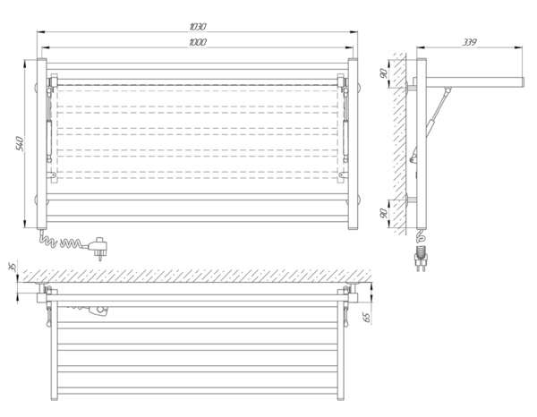Діаметр: стійка □ 30х30мм, товщина 1,2 мм; перемичка овал 32х18мм, товщина 1,2 мм; стійка полиці □ 30х15мм, товщина 1,5 мм; перемичка полиці овал 32х18мм, товщина 1,2 мм