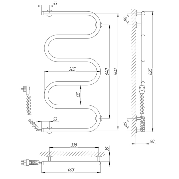 Полотенцесушитель Laris Змеевик 25 РС5 400 х 800 Э (подкл. слева) Laris